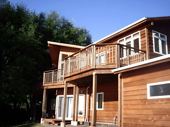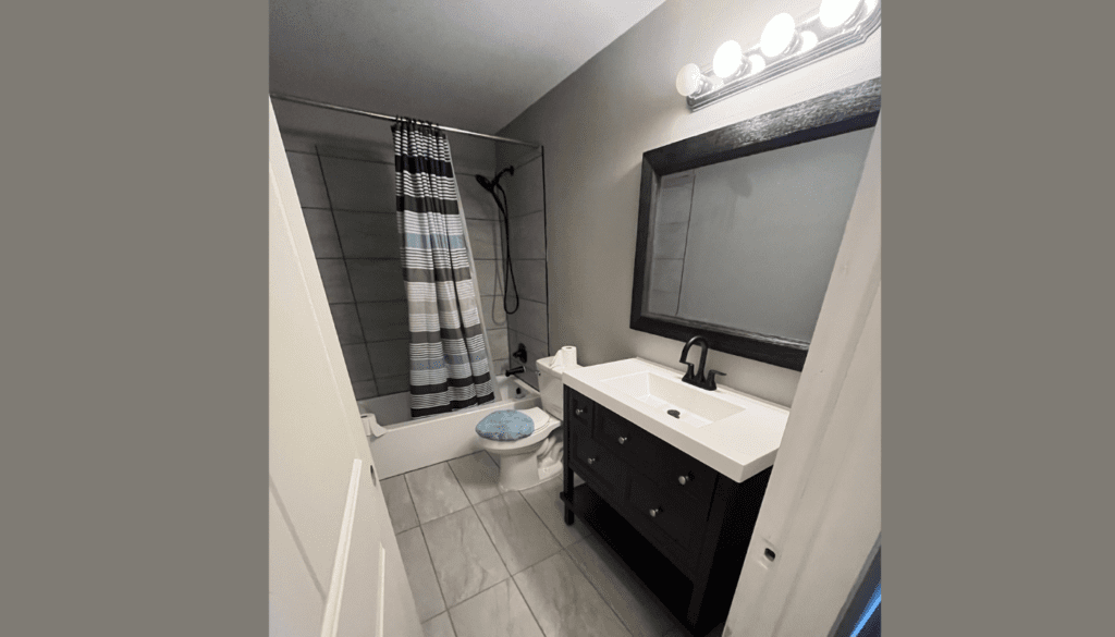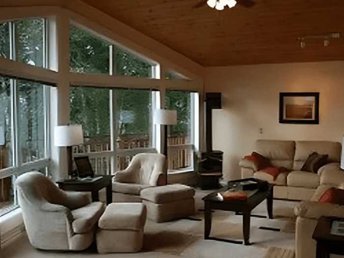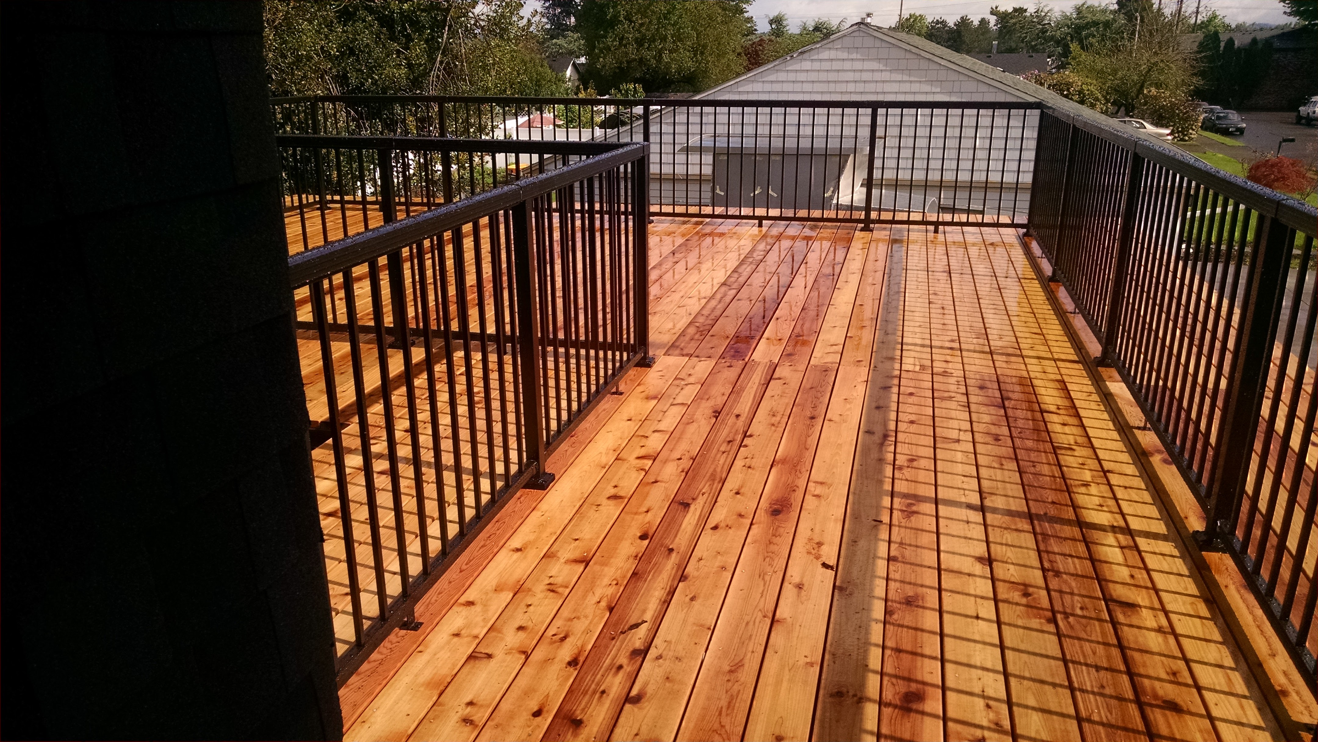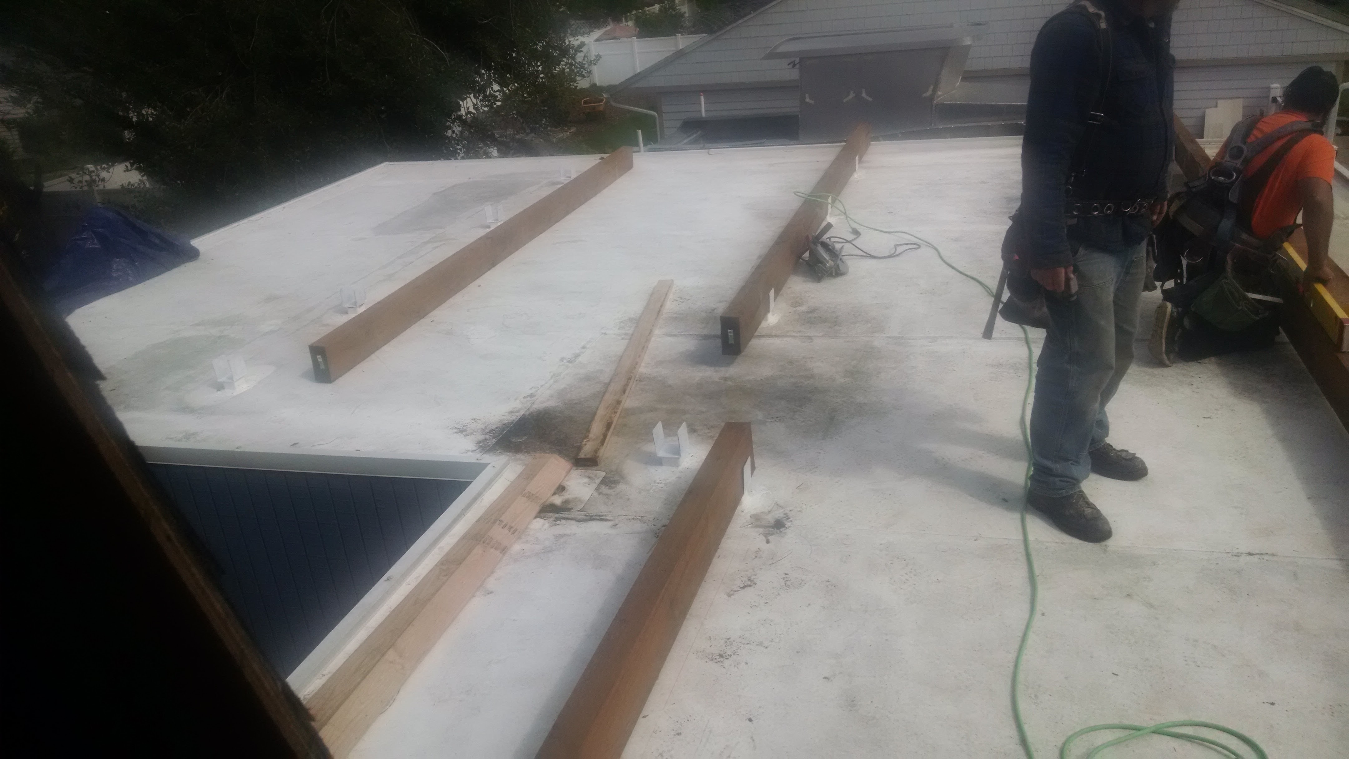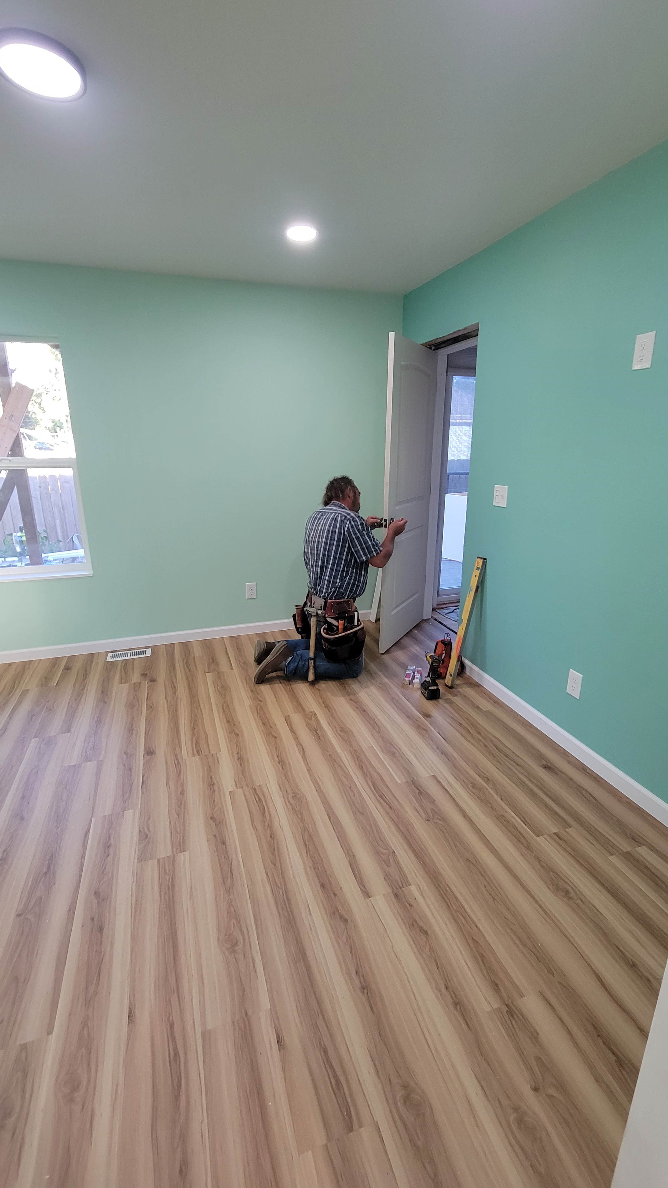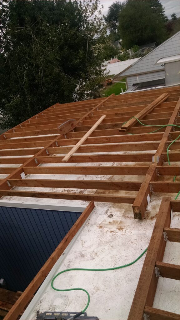 This addition was a add a bedroom and bathroom. They also chose to add a deck over their new bedroom as a roof option. They access their roof deck via an outdoor stair case. This room replaced their primary bedroom. We removed the wall from their old bedroom to expand the living room.