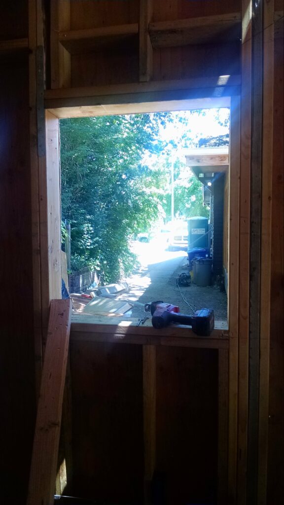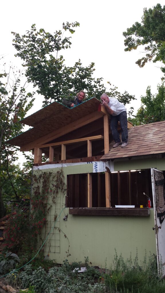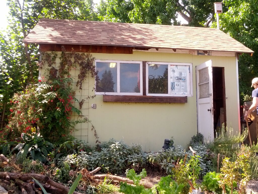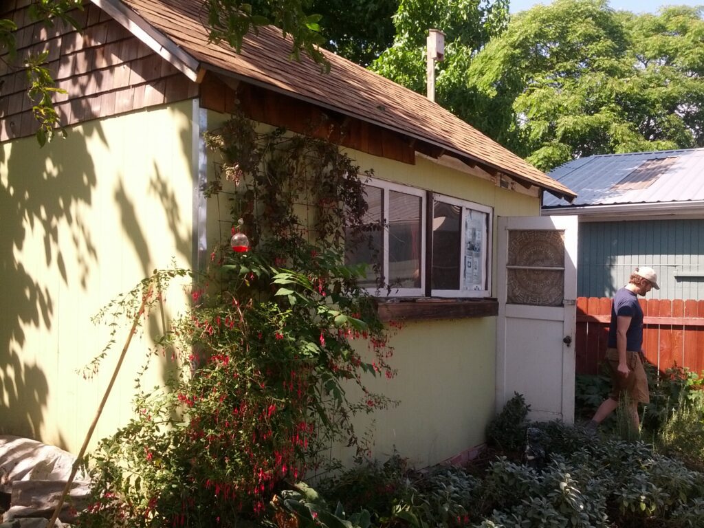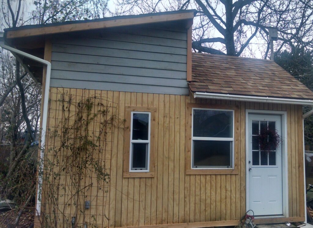 This is a very tiny house built in the Kenton neighborhood. We converted a little work shed into a tiny home with a loft, tiny kitchen, and a bathroom (with a tub).
